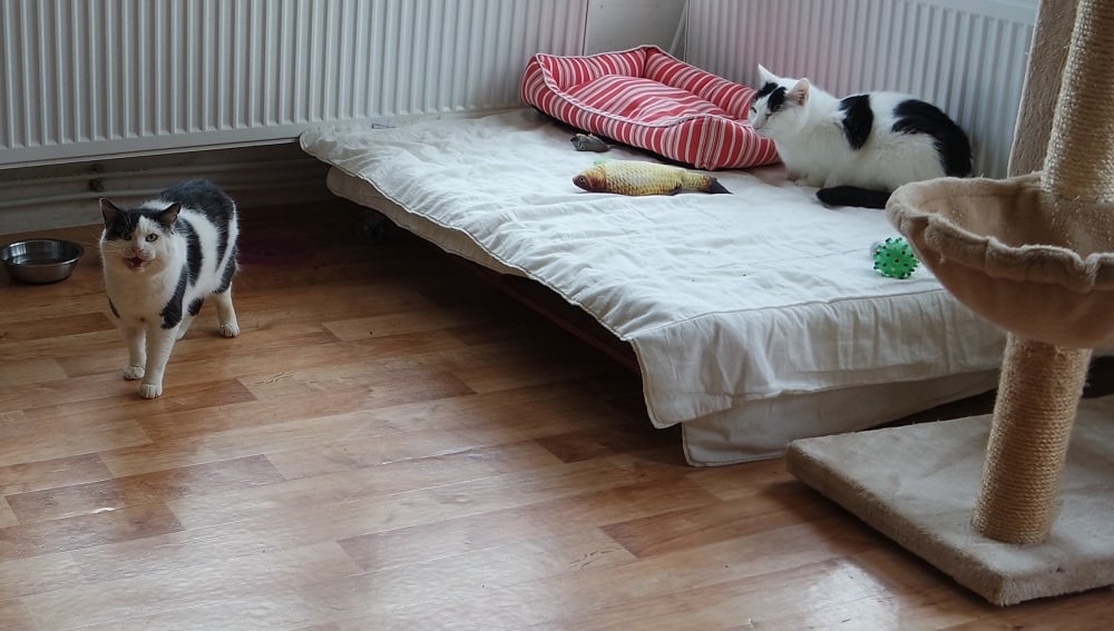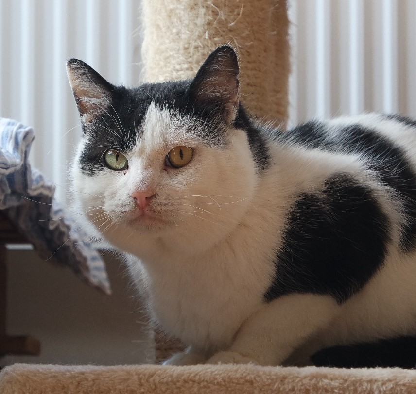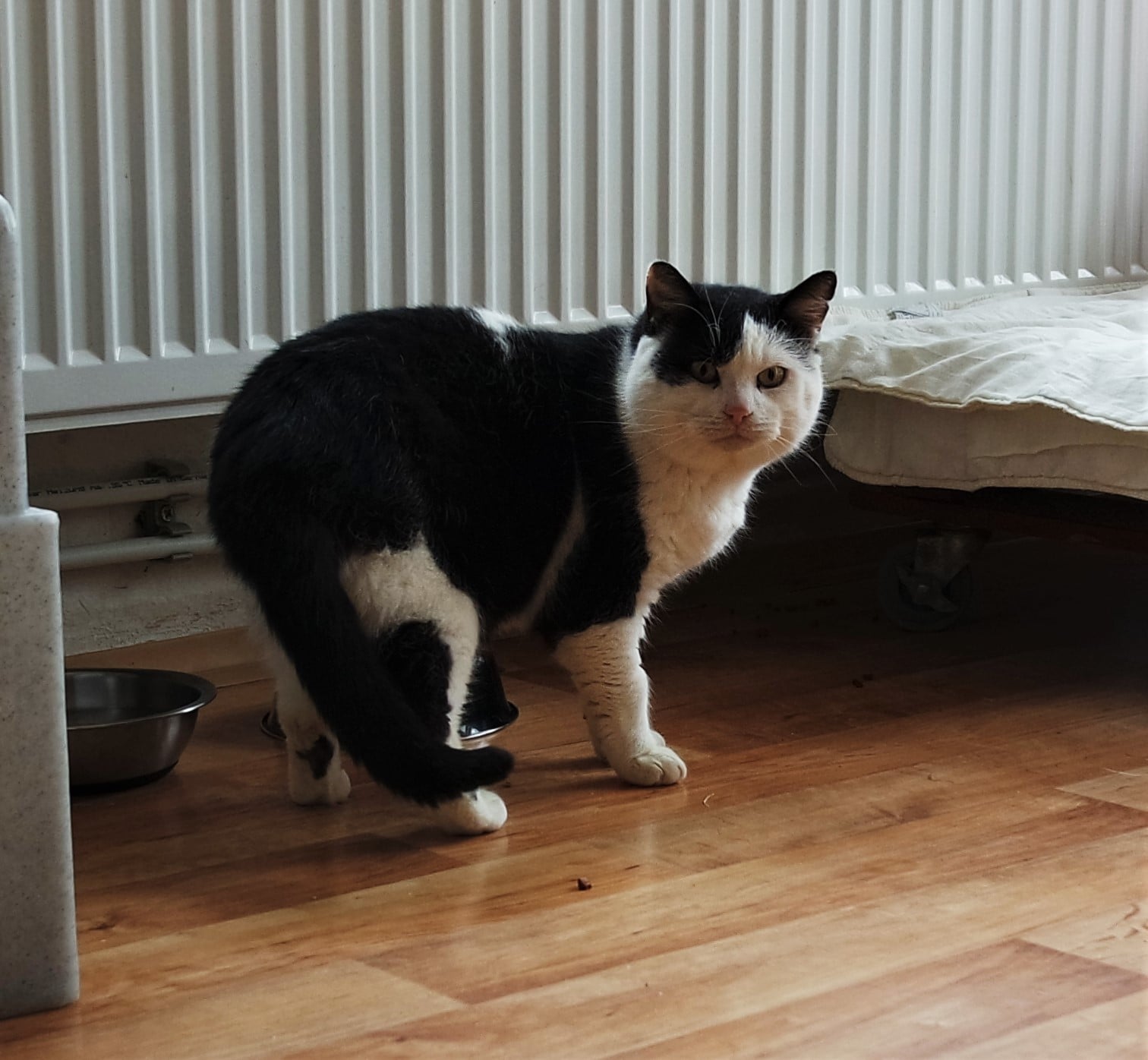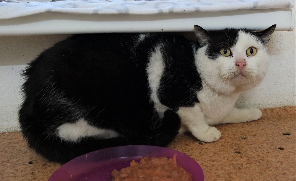Kocourek se u nás zatím rozkoukává, ale už nyní nepohrdne plnou mističkou a předvede se v plné kráse. Je bohužel FeLV pozitivní – proto musí být umístěn jako kocouří jedináček či ke stejně nemocné kočce.