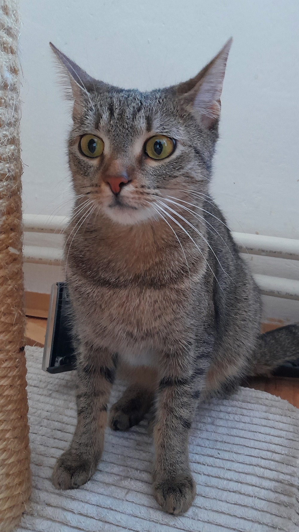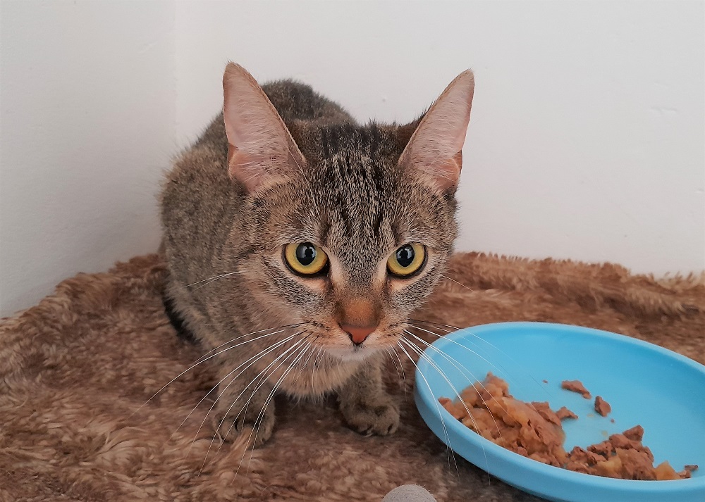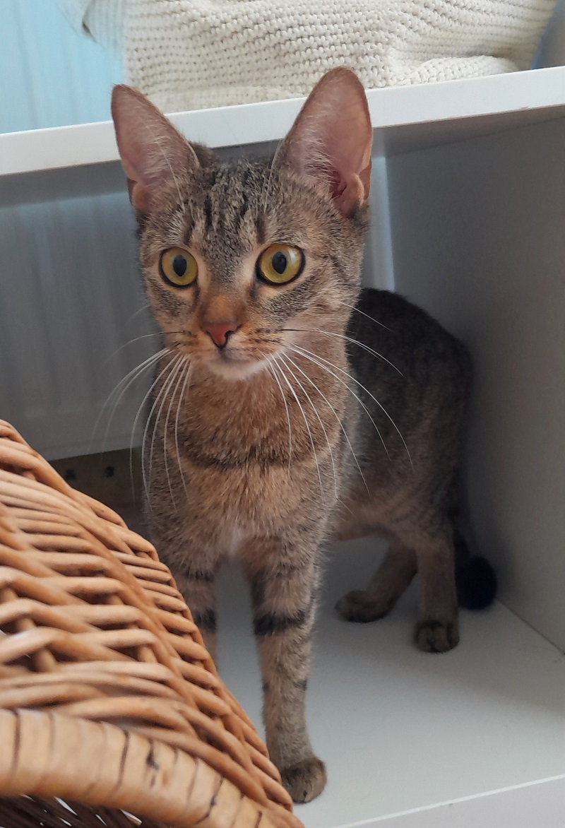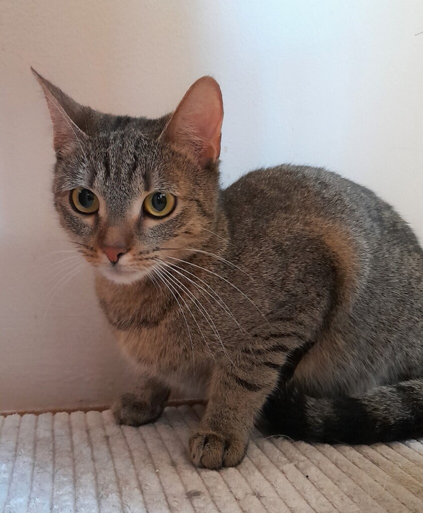 Drobnou kočičku k nám přinesl pán, který ji našel v chodbě domu po odstěhování sousedů, kteří ji tam prostě nechali. Amálka je roztomilá a v útulku zatím nesmělá – je vidět, že by se ráda mazlila. Pokud se však cítí !zahnána do kouta” neváhá se ohnat packou. Proto pro ni hledáme klidný domov, v bytě, bez jiných zvířat a zřejmě i bez malých dětí.