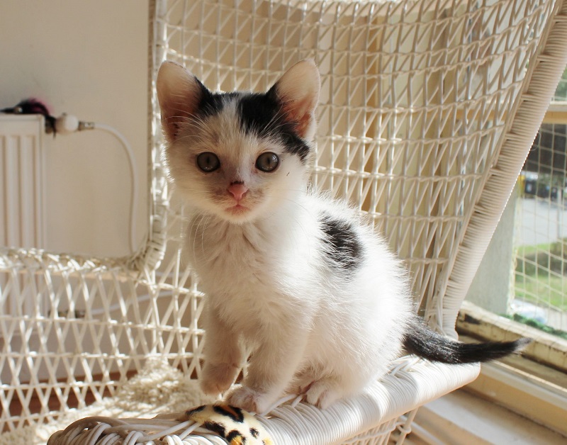 Hodný, vymazlený a závislák na lidech. Maličkého kocourka nám přivezli z jedné firmy, kde se motal a byl lehce nastuzený. Kocourek je vypiplaný na kotěcím sunaru a má moc rád lidi. Týden po něm dorazil do útulku jeho bráška Bob .