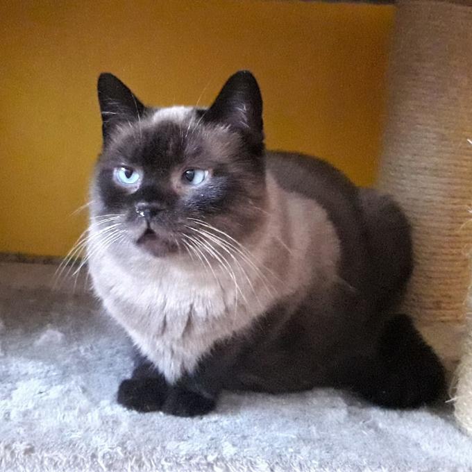 Fešný kocour v nejlepších letech je u nás již nějaký čas a zatím nepříliš úspěšně bojuje s chronickým zánětem v dutinách. Na druhou stranu se mu podařilo přibrat, vylepšit kožíšek a navíc je z něj trpělivý mazel- má rád i děti.