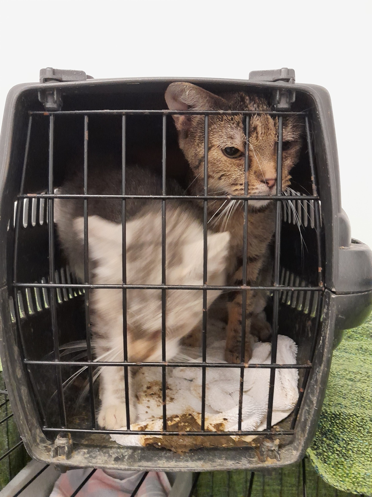 Klidná a přátelská kočka. Byla nalezena se svojí kamarádkou v přepravce u podjezdu na Černém Mostě. Má chronický zánět dásní.