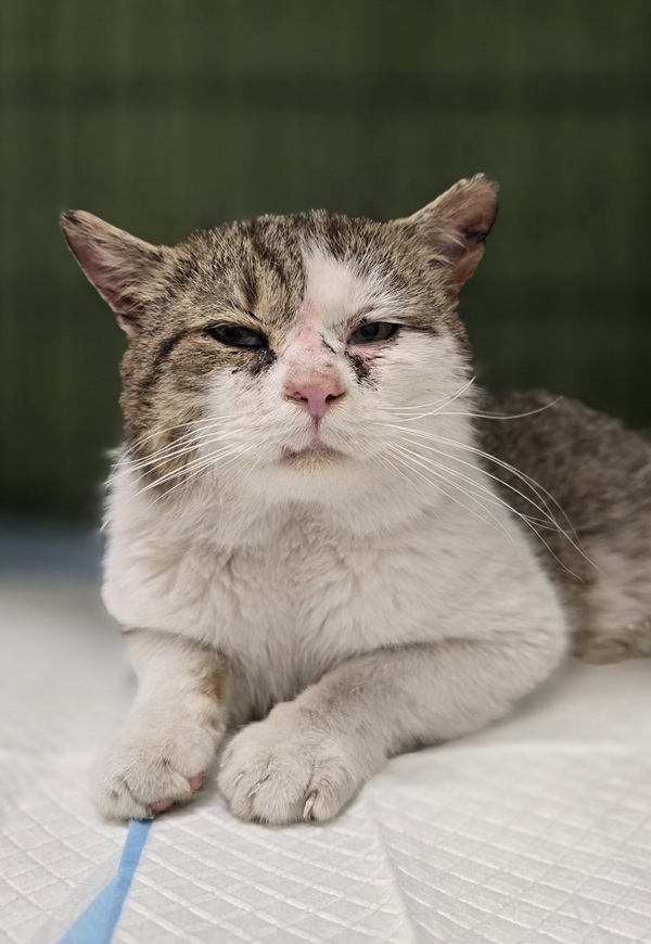 Sympatický, upovídaný a přátelský kocour. Vypaádá to, že se celý život o sebe musel starat sám a tak si teď užívá pohodu na pelechu či dodoávky krmení. Trošku problém je s ním při veterinárním ošetření – věříme, že i to se srovná, až získá plnou důvěru.