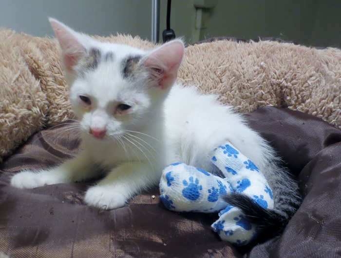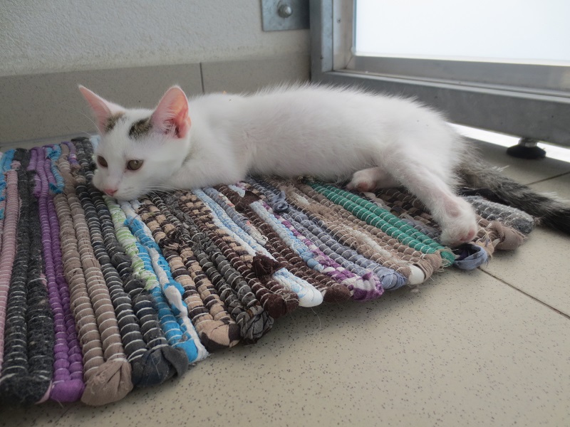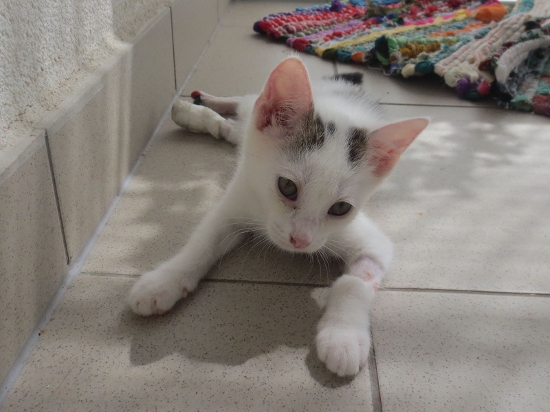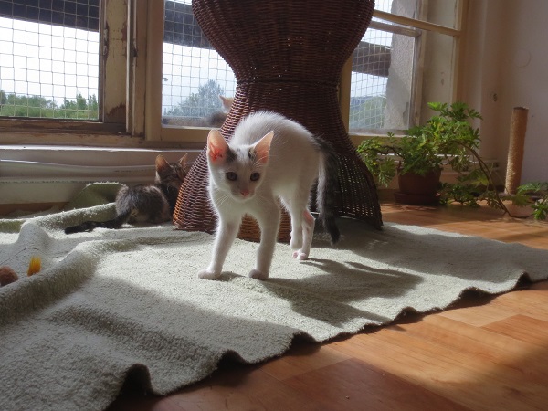 Prstík je podnikavý a zvídavý kocourek. Do útulku odvážně přijel v batohu! Našli ho totiž všímaví cyklisté u cesty a zajistili mu péči u nás v útulku. Prstík si totiž poranil zadní packy – část jedné bylo třeba amputovat a u druhé mu zbývají dva prstíky . To mu ale vůbec nevadí – hraje si, běhá po třech naprosto závodní rychlostí a lumpačí  stejně jako ostatní koťata.