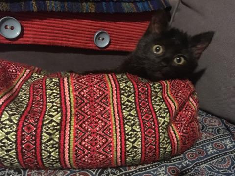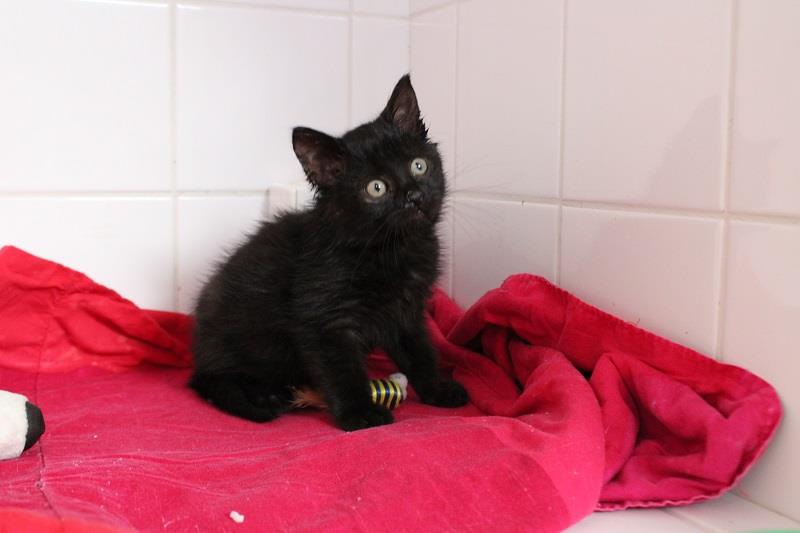 Hravá a přátelská kotěcí slečna. Už jako mrně je to pěkný rarášek – zadržela ji městská policie, protože pobíhala po kruháku a ohrožovala bezpečnost a plynulost provozu. V útulku je spokojená – je tu teplo, bašta, jen ji trochu trápí ostatní koťata – jsou větší než ona furt jí pošťuchují. Velmi by tudíž ocenila domov