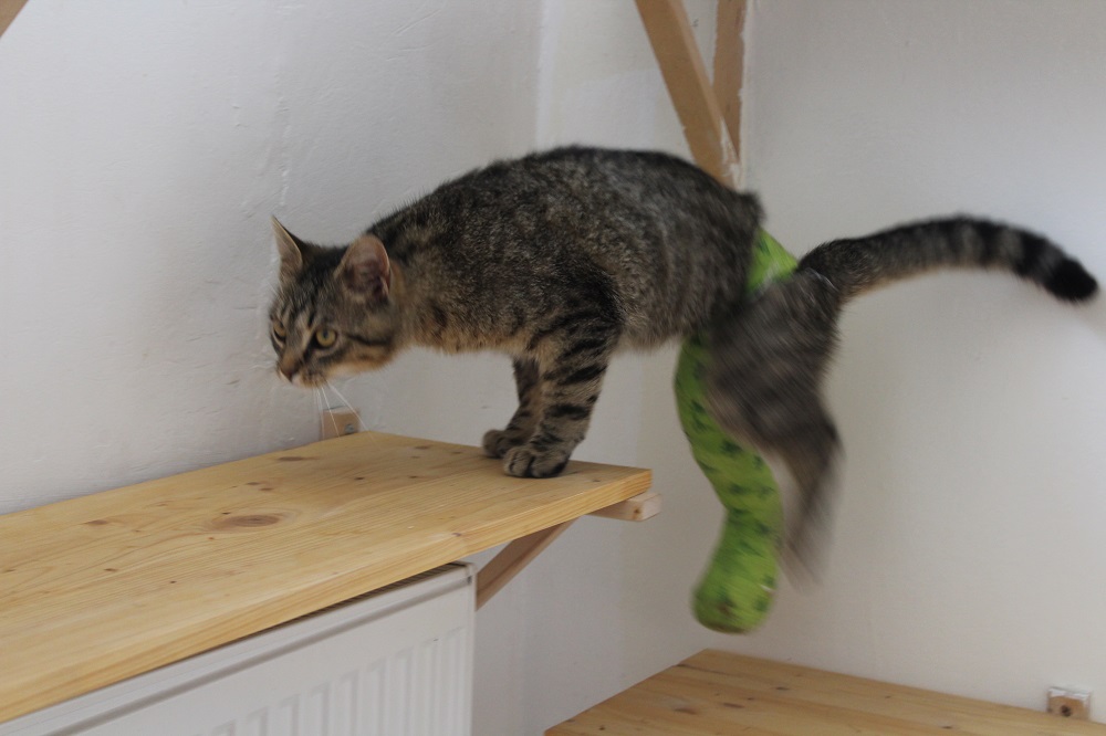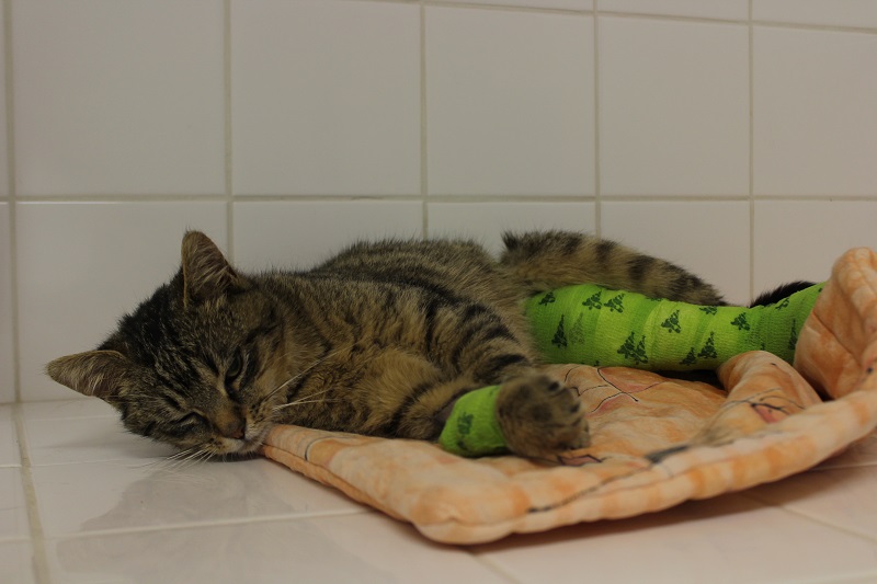 Hodný a přátelský kocourek nalezený kousek od silnice se zlomenou packou. U nás v útulku se podařilo packu “opravit” a nyní Vojta funguje zcela normálně ( tedy pokud se nechytá prudká změna počasí – to zlomeninu opět cítí ).