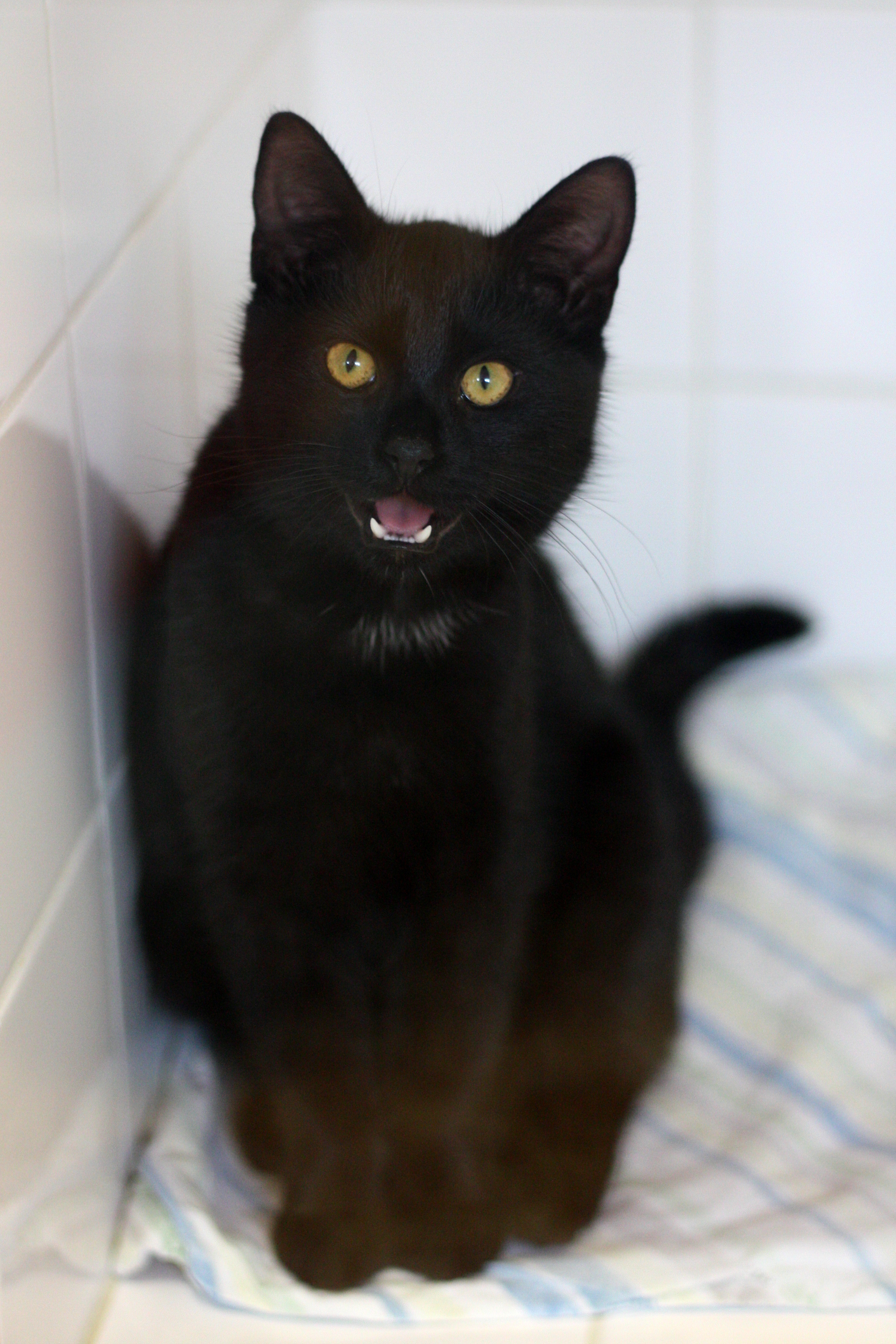 Včera do útulku přijel černý kocourek s červeným obojkem s rolničkou – určitě má někde majitele!